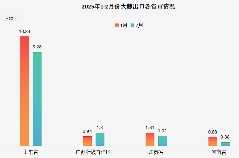 2025年1-2月份,庫內(nèi)大蒜行情起伏明顯,1-2月份大蒜出口情況如何?