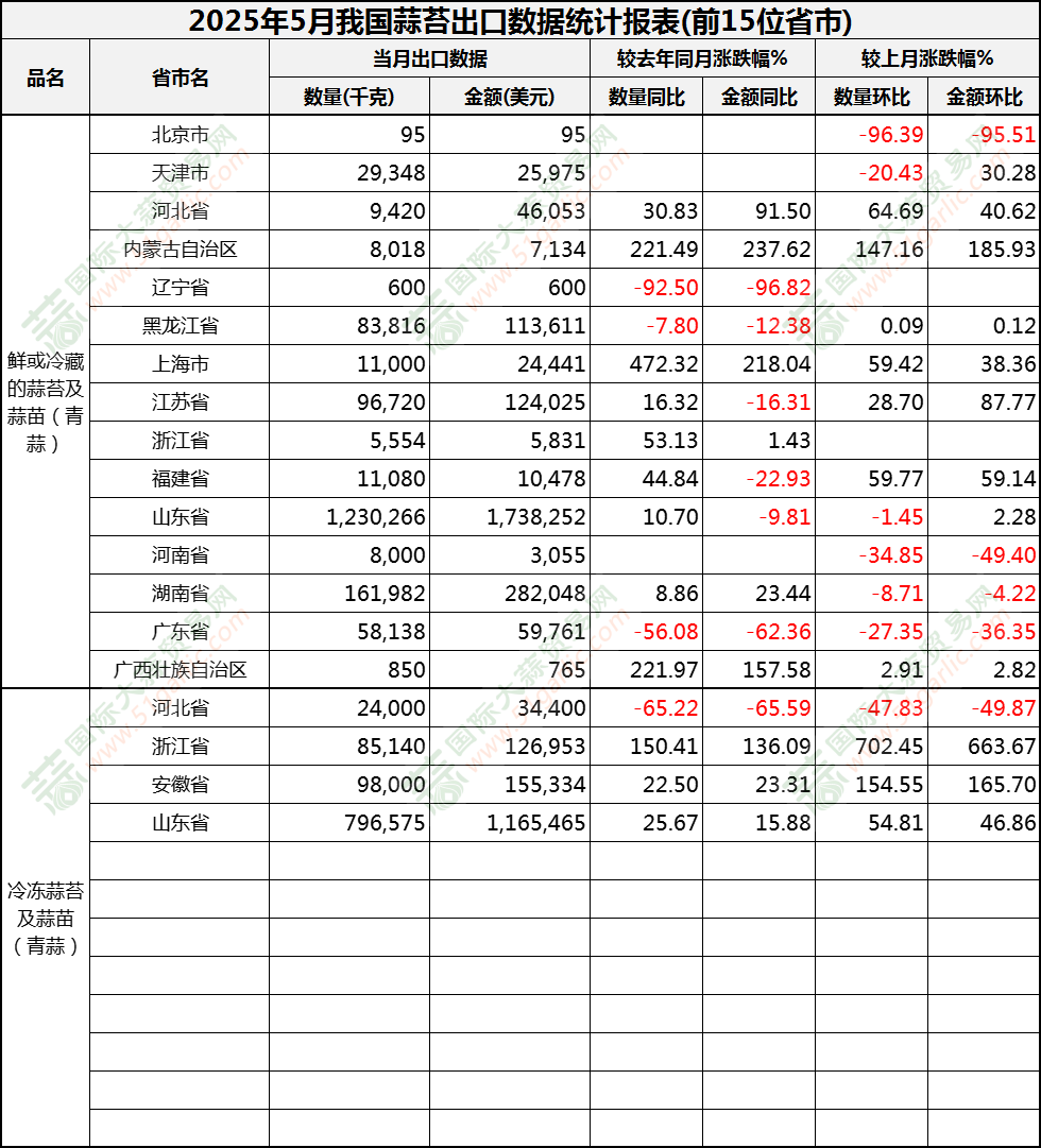 2025年5月蒜苔出口數(shù)據(jù)(按省市)