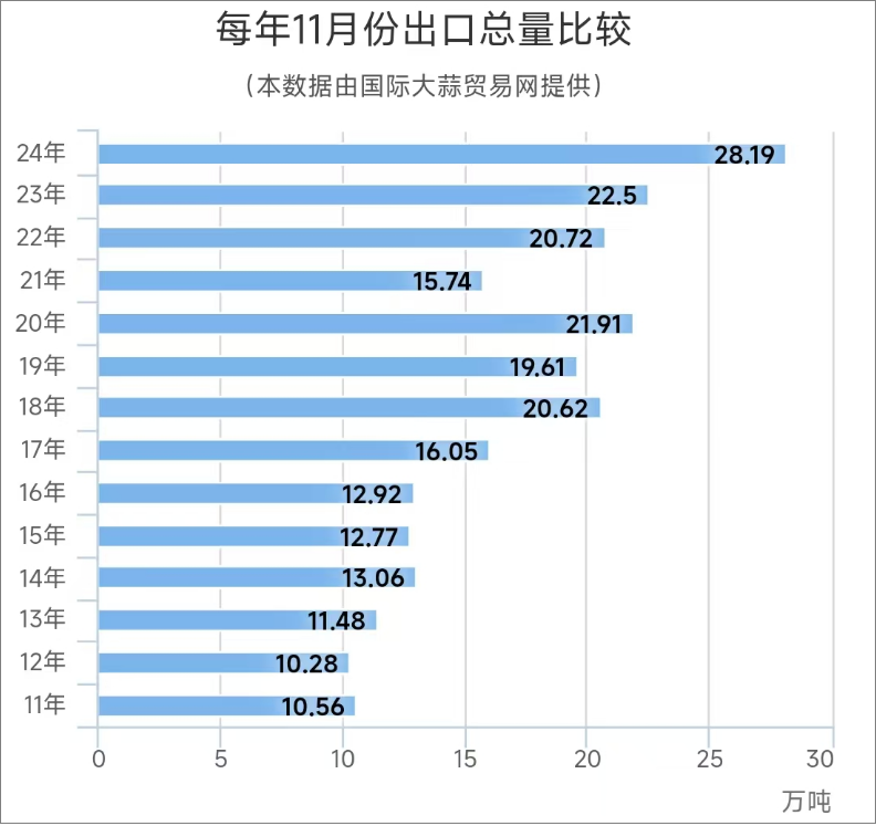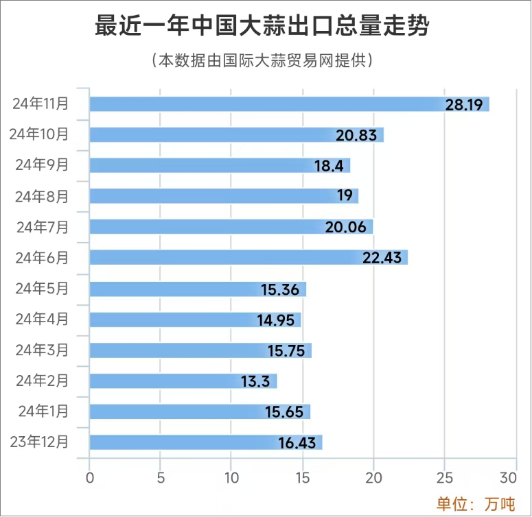 11月份是大蒜出口的旺季,海外市場需求強勁,大蒜出口量再創(chuàng)新高!