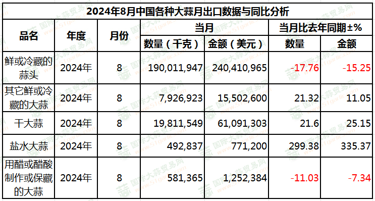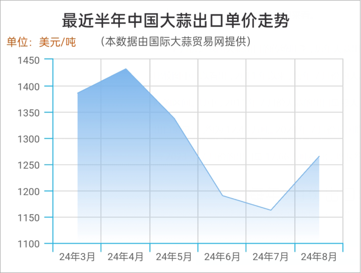 8月大蒜出口量同環(huán)比雙降