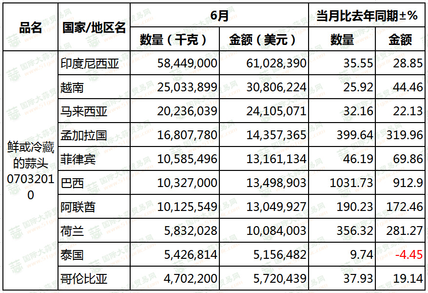 大蒜出口量創(chuàng)上半年新高