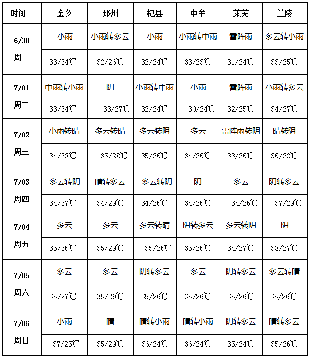 本周大蒜產(chǎn)區(qū)降雨頻繁。6月30日至7月2日,山東、河南、江蘇多數(shù)產(chǎn)區(qū)將迎來小雨或雷陣雨天氣;7月6日,山東、河南局部地區(qū)有小雨。與此同時,氣溫較上周顯著上升,導(dǎo)致本周產(chǎn)區(qū)將處于高溫高濕的環(huán)境,整體感覺較為悶熱。其中,金鄉(xiāng)產(chǎn)區(qū)本周最高氣溫預(yù)計(jì)為37℃,最低氣溫為24℃。頻繁的降雨不僅會妨礙產(chǎn)區(qū)貨源的供應(yīng)和買賣交易的順利進(jìn)行,還會對大蒜的儲存帶來一定的風(fēng)險。因此,蒜農(nóng)和蒜商需密切關(guān)注天氣動態(tài),并適時調(diào)整收購與銷售策略。
